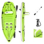There's nothing better than relaxing on the water and fishing the day away. Now, you can fish in comfort with the convenient Hydro-Force Koracle Inflatable Fishing Kayak. Along with a built-in fishing rod holder and oar clasps, this kayak also features an inflatable backrest for ultimate relaxation. There are also 4 footrests to accommodate users of all heights, so anyone that uses this kayak is promised top-notch comfort. The Koracle Kayak is as convenient as it gets. Simply inflate it when you're ready to use it, and deflate it when you're done. Its perfect for transportation and compact storage. Plus, the dorsal fin is detachable, making it even easier to store this kayak. This set also includes an Air Hammer hand pump for simple, quick inflation, a paddle and a repair patch.