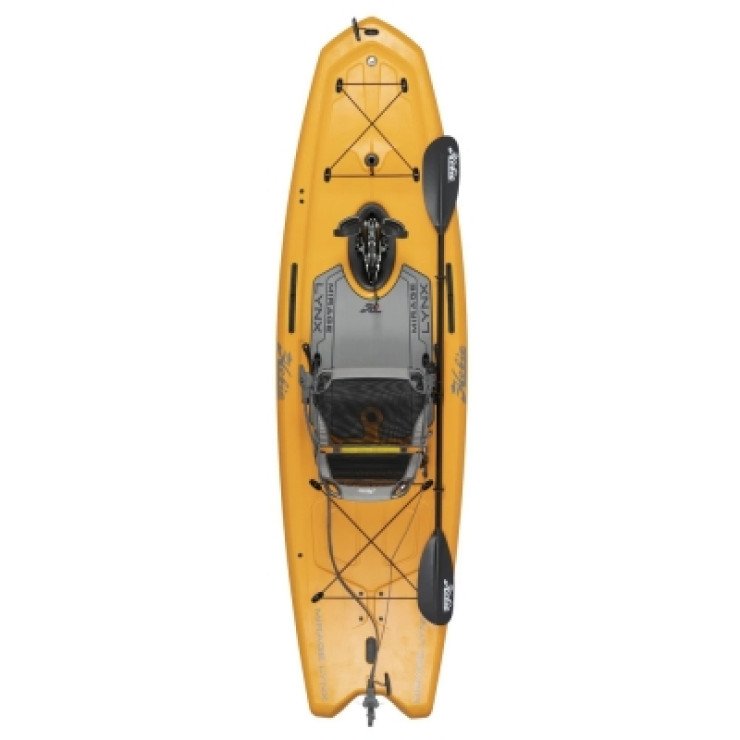 Relish the power of pedal propulsion, in both forward and reverse. The effortless speed of the MirageDrive 180 with Kick-Up Fins combined with the streamlined, sleek hull of the Lynx make for a truly epic ride. Kick it up a notch, as you swiftly skim across the water's surface, carving turns and leaving the world behind. The Lynx's flat-bottom design provides confidence-inducing stability and ultimate maneuverability. Less is more when it comes down to construction. Lightweight materials meet optimal performance with ACE-TEC Technology that is perfect for weekends off the grid and exploring uncharted waters. Weighing in at only 45 lbs. and equipped with rear loading skid pads, easily throw it on the roof of your car for uncomplicated transport. The best seat in the house, designed for comfort with breathable, mono-mesh, elevated to keep you dry all day. The wide bow creates a smoother ride and ample storage for your gear. Meticulously crafted with molded in tracks and an accessory mount, make it yours with our Sail Kit, Bimini Sunshade and other upgrades.
